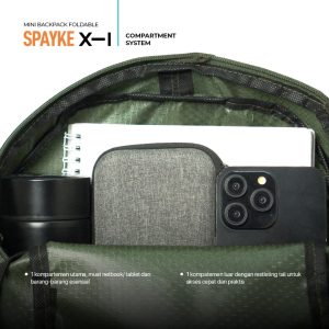 Spayke X-1 adalah rilisan pertama dari seri mini backpack lipat Rover, yang telah terjual ratusan unit sebelumnya. Dikenal dengan desain kasual dan sporty, tas ini hadir dengan kombinasi warna ekspresif dan aksen grafis strip yang memberikan tampilan modern. Dengan penyimpanan minimalis, tas ini adalah pilihan sempurna bagi Anda yang menginginkan tas ringkas, ringan, dan kuat. Ideal untuk short trip, hiking, trekking, jalan-jalan, hingga olahraga ringan.